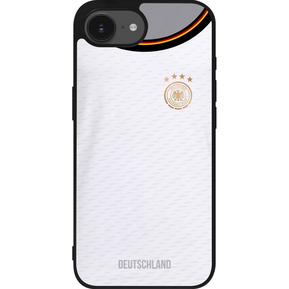Coque iPhone 17e / 16e - Silicone rigide noir Maillot de football Allemagne 2022 personnalisable