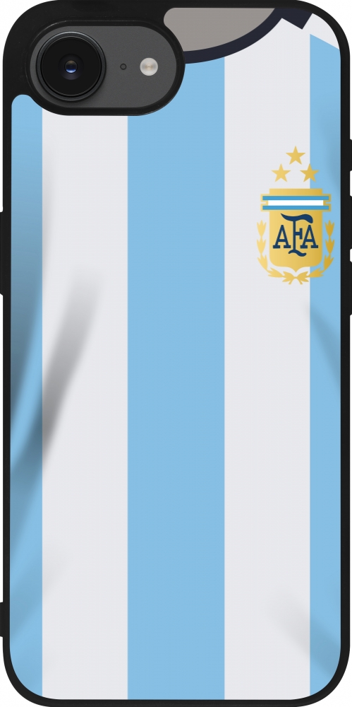Coque iPhone 17e / 16e - Silicone rigide noir Maillot de football Argentine 2022 personnalisable