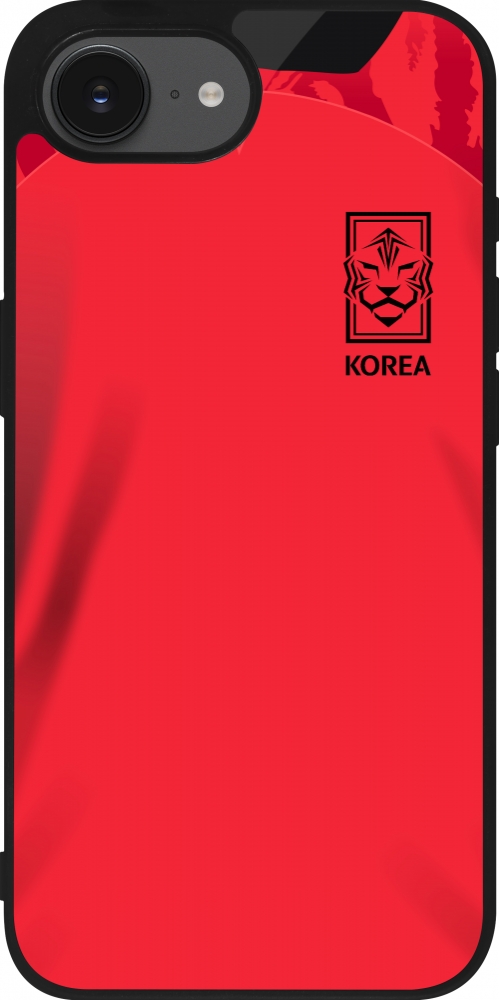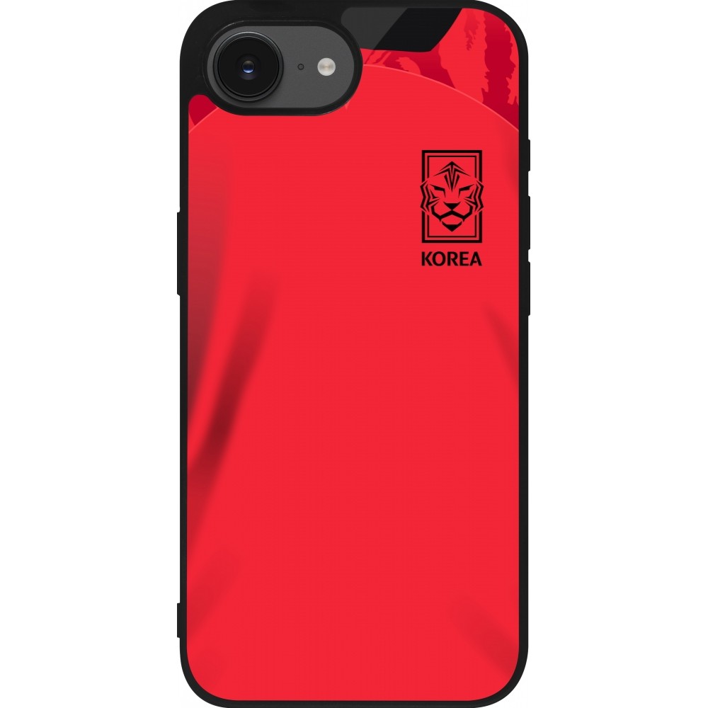 Coque iPhone 17e / 16e - Silicone rigide noir Maillot de football Corée du Sud 2022 personnalisable