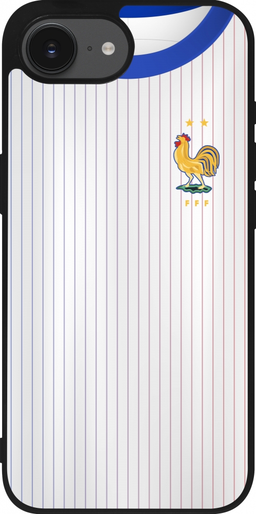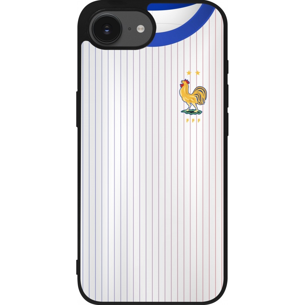 Coque iPhone 17e / 16e - Silicone rigide noir Maillot de football France Extérieur personnalisable