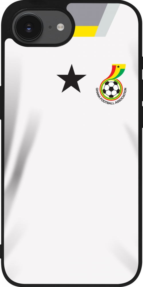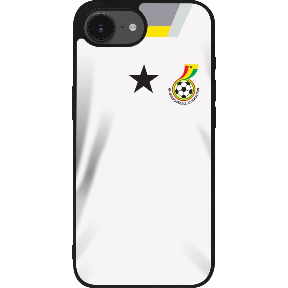 Coque iPhone 17e / 16e - Silicone rigide noir Maillot de football Ghana 2022 personnalisable