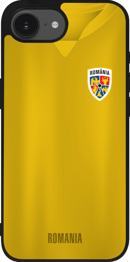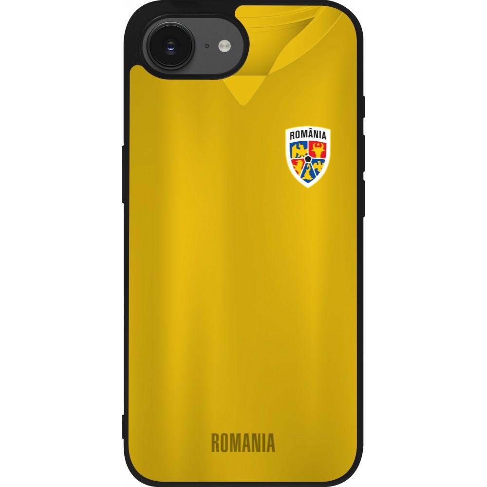 Coque iPhone 17e / 16e - Silicone rigide noir Maillot de football Roumanie