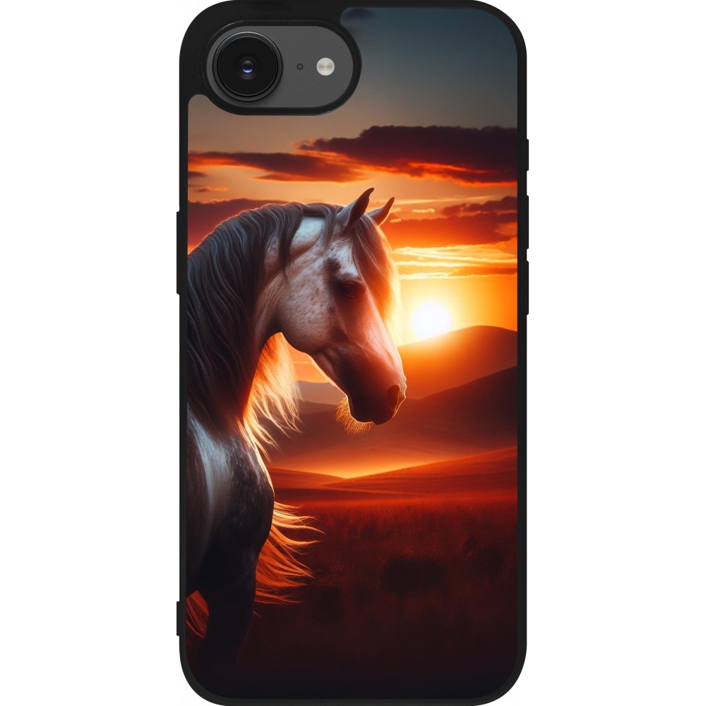 Coque iPhone 17e / 16e - Silicone rigide noir Majestic Sunset Horse