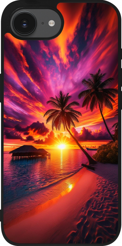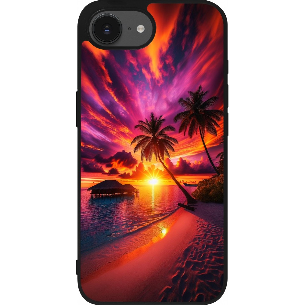 Coque iPhone 17e / 16e - Silicone rigide noir Maldives Dusk Bliss