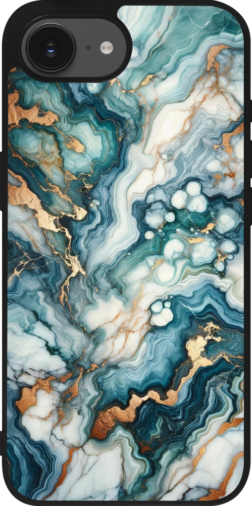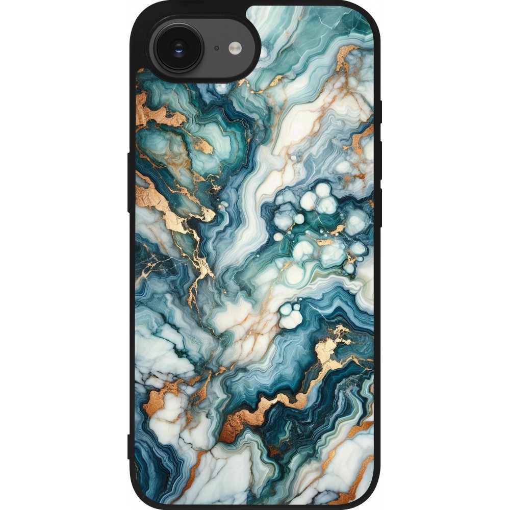 Coque iPhone 17e / 16e - Silicone rigide noir Marbre Vert Bleu Doré