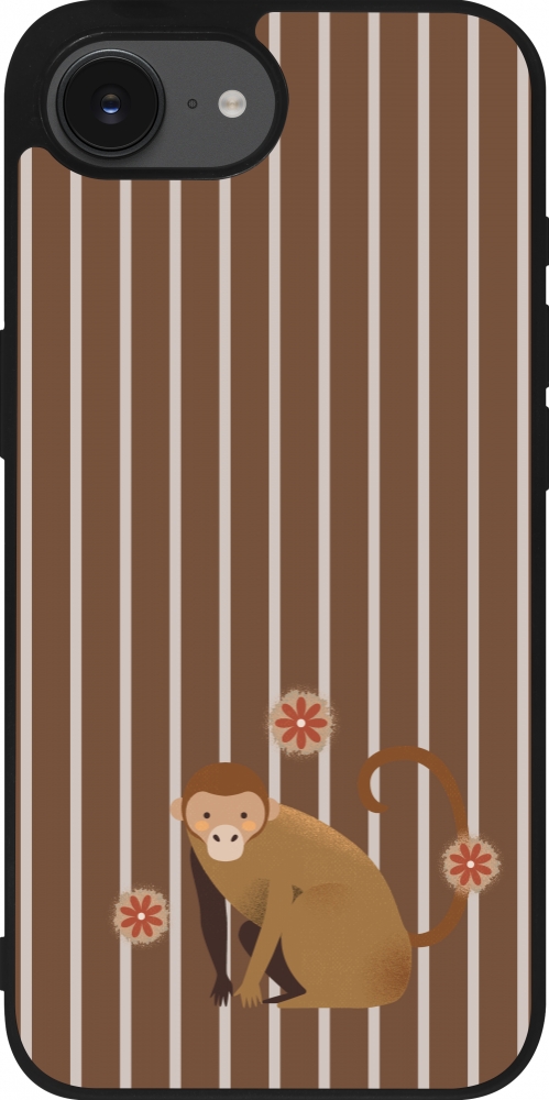 Coque iPhone 16e - Silicone rigide noir Monkey with stripes