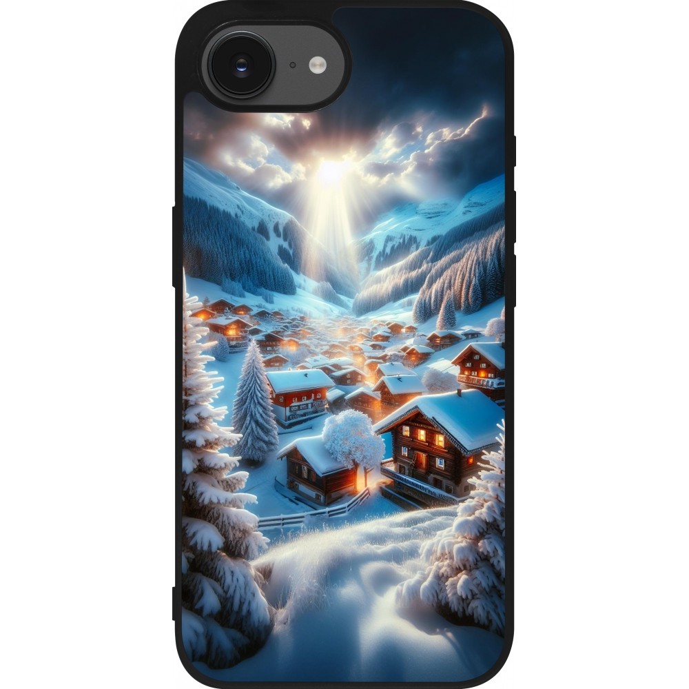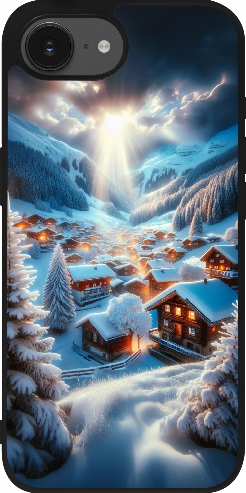 Coque iPhone 17e / 16e - Silicone rigide noir Mont Neige Lumière