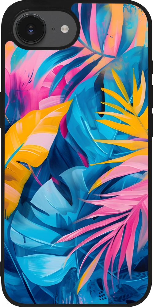 Coque iPhone 17e / 16e - Silicone rigide noir Palms Blue