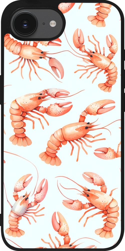 Coque iPhone 17e / 16e - Silicone rigide noir Pattern de homards pastels