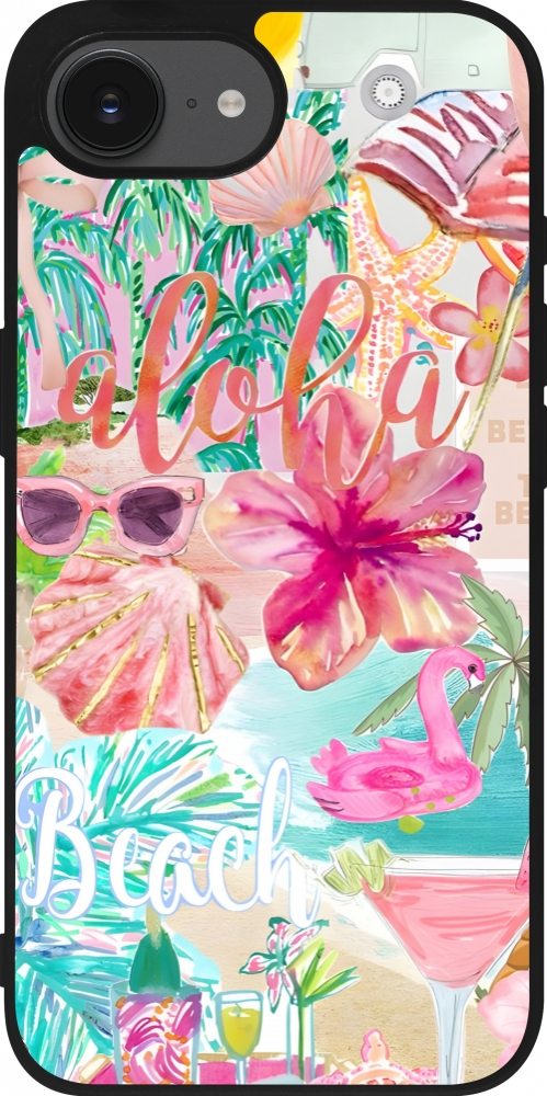 Coque iPhone 17e / 16e - Silicone rigide noir Preppy Collage Aloha