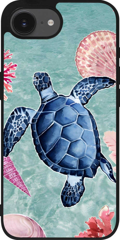 Coque iPhone 17e / 16e - Silicone rigide noir Preppy Turtle
