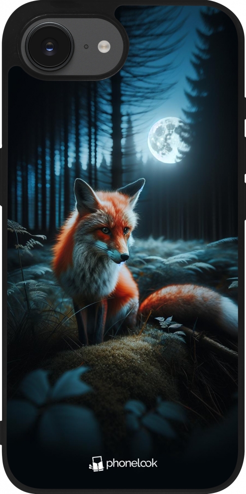 Coque iPhone 17e / 16e - Silicone rigide noir Renard lune forêt