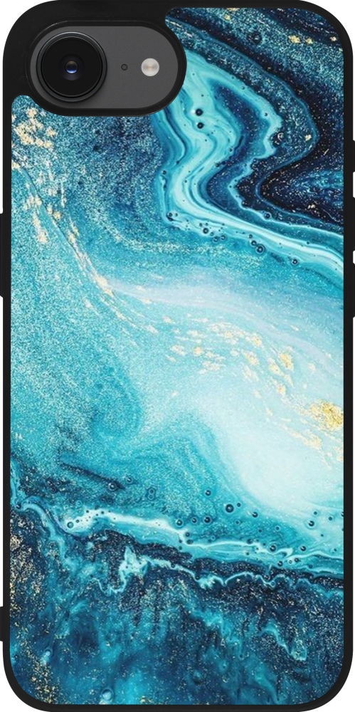 Coque iPhone 17e / 16e - Silicone rigide noir Sea Foam Blue