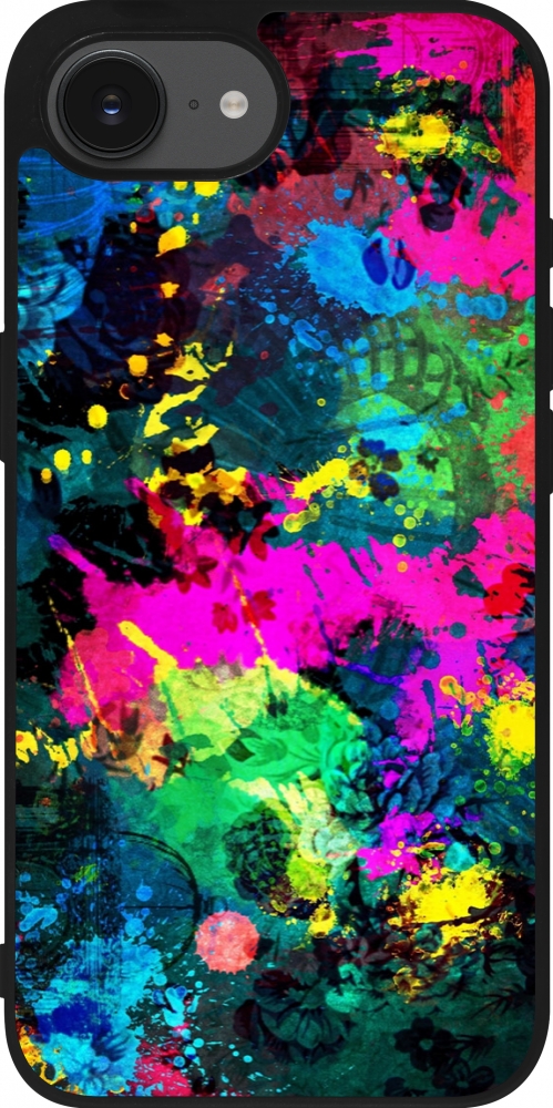 Coque iPhone 17e / 16e - Silicone rigide noir Splash paint