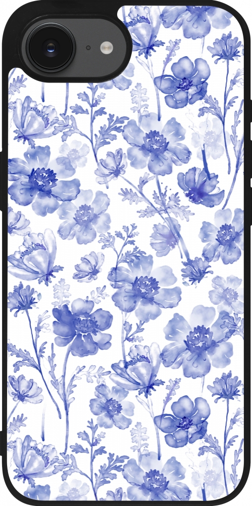 Coque iPhone 17e / 16e - Silicone rigide noir Spring 23 watercolor blue flowers