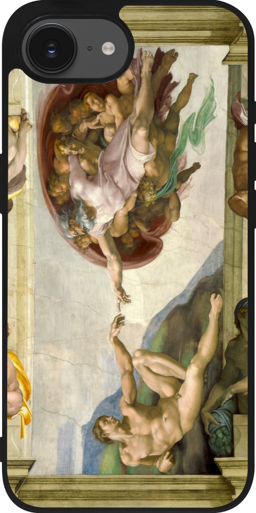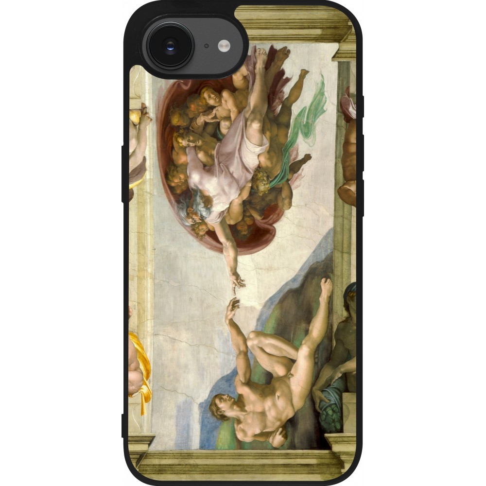 Coque iPhone 17e / 16e - Silicone rigide noir Tableau art - La Création d’Adam - Michel-Ange