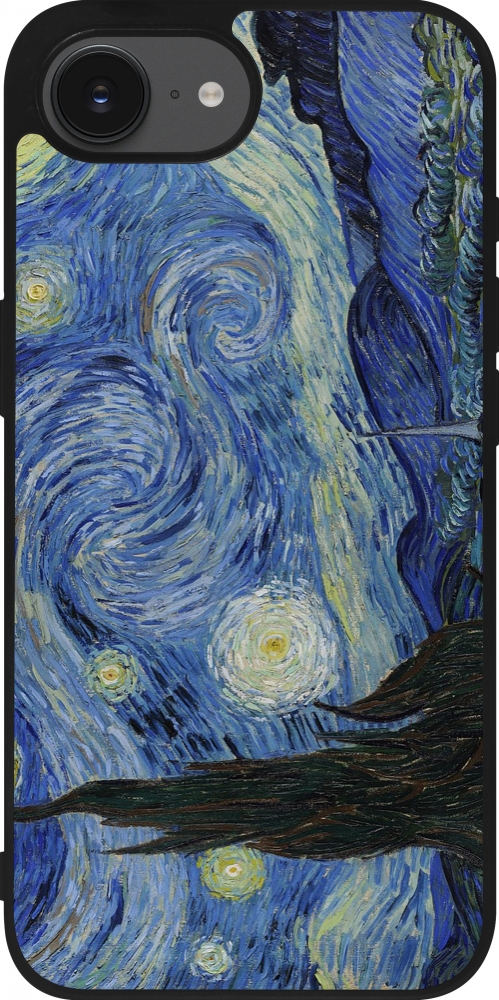 Coque iPhone 16e - Silicone rigide noir Tableau art - La Nuit étoilée - Van Gogh