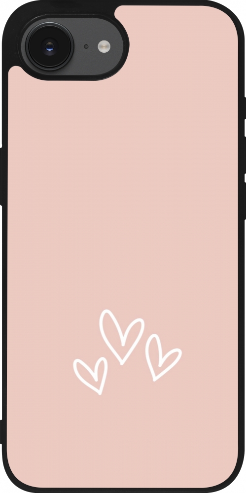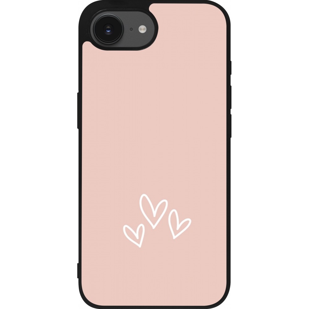 Coque iPhone 17e / 16e - Silicone rigide noir Valentine 2023 three minimalist hearts