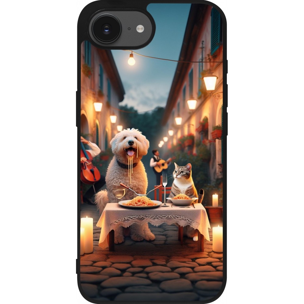 Coque iPhone 17e / 16e - Silicone rigide noir Valentine 2024 Dog & Cat Candlelight