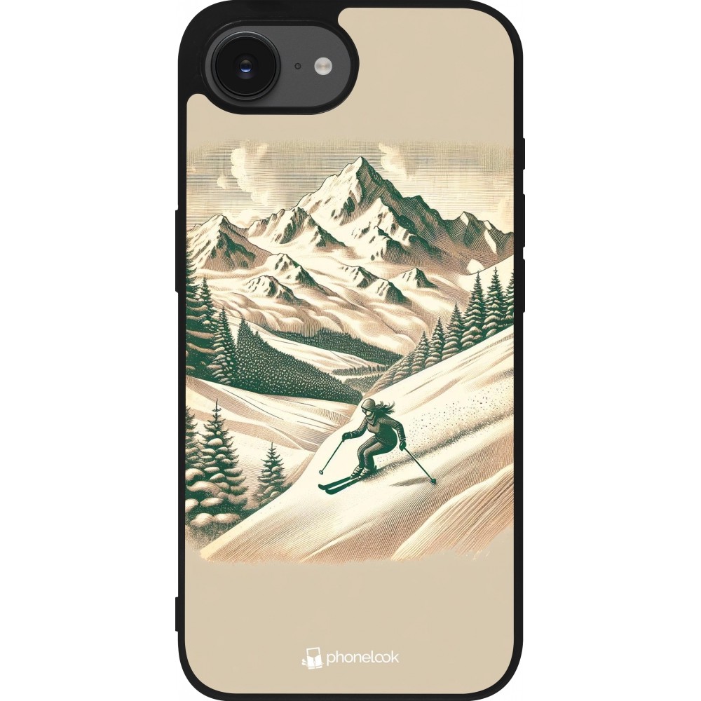 Coque iPhone 17e / 16e - Silicone rigide noir Vintage Ski Mountain