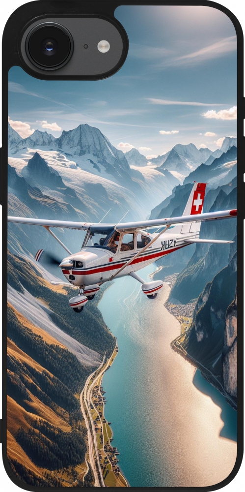 Coque iPhone 16e - Silicone rigide noir Vol Alpin Suisse