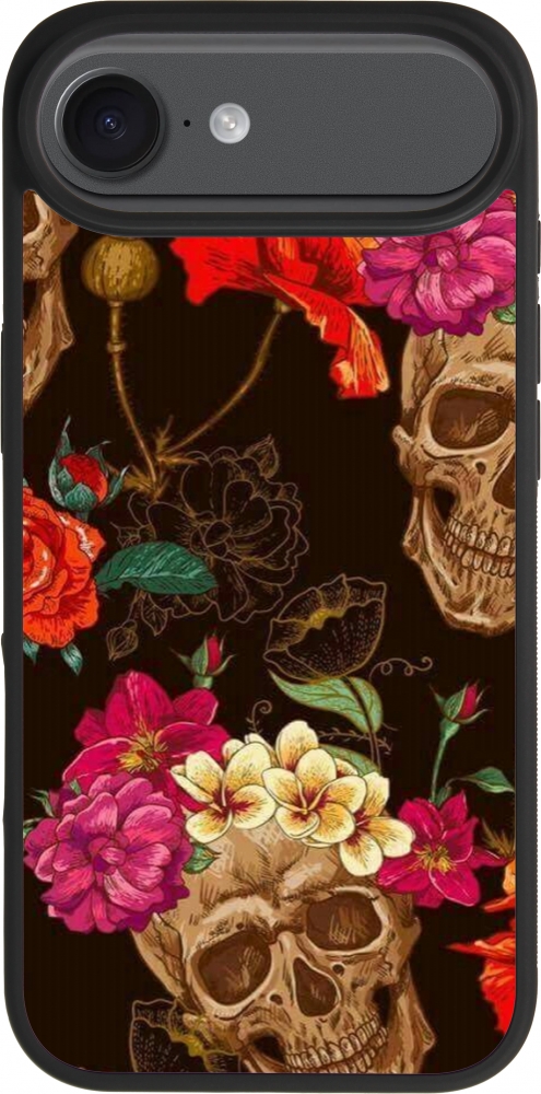 Coque iPhone Air - Silicone rigide noir Skulls and flowers