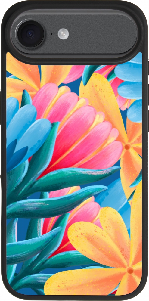 Coque iPhone Air - Silicone rigide noir Spring 23 colorful flowers