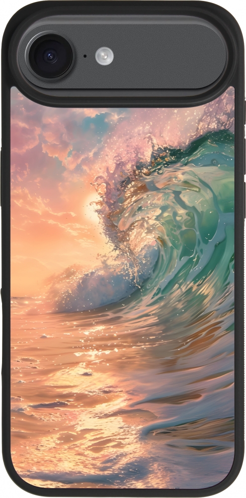 Coque iPhone Air - Silicone rigide noir Wave Sunset