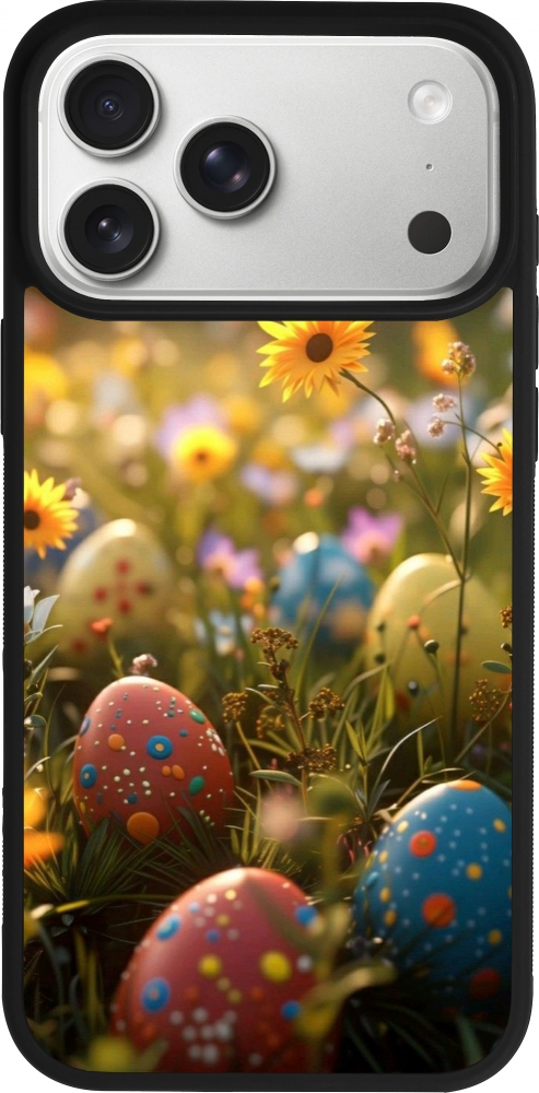 Coque iPhone 17 Pro Max - Silicone rigide noir Easter 2026 Decorated eggs