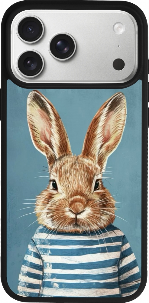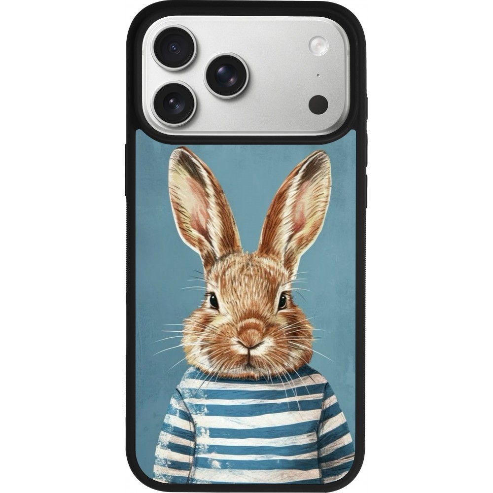 Coque iPhone 17 Pro Max - Silicone rigide noir Easter 2026 Rabbit navy