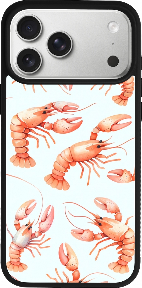 Coque iPhone 17 Pro Max - Silicone rigide noir Pattern de homards pastels