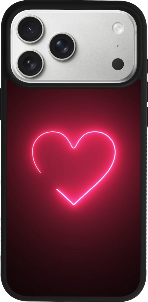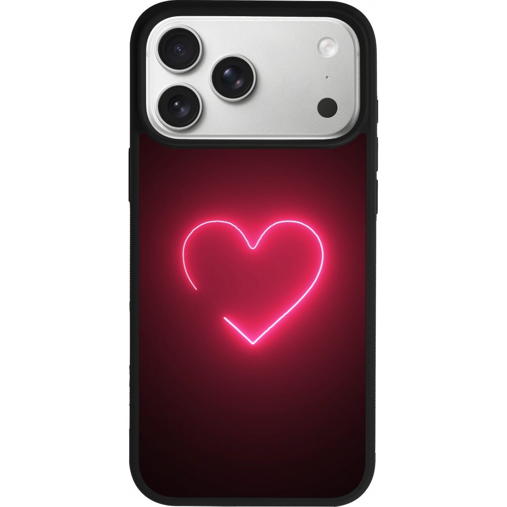 Coque iPhone 17 Pro Max - Silicone rigide noir Valentine 2023 single neon heart