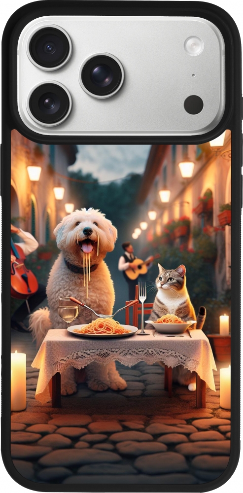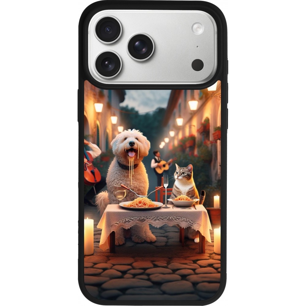 Coque iPhone 17 Pro Max - Silicone rigide noir Valentine 2024 Dog & Cat Candlelight