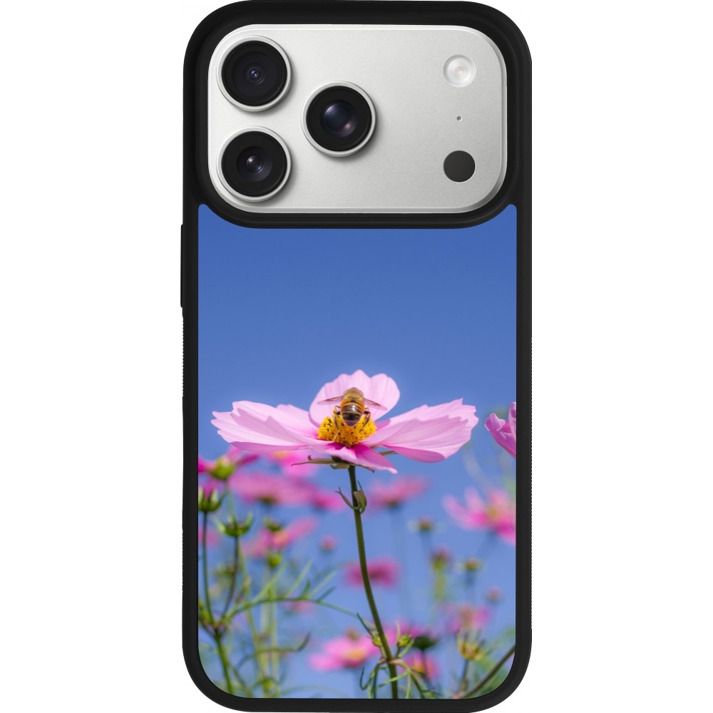 Coque iPhone 17 Pro - Silicone rigide noir Bee on a flower Spring 2026