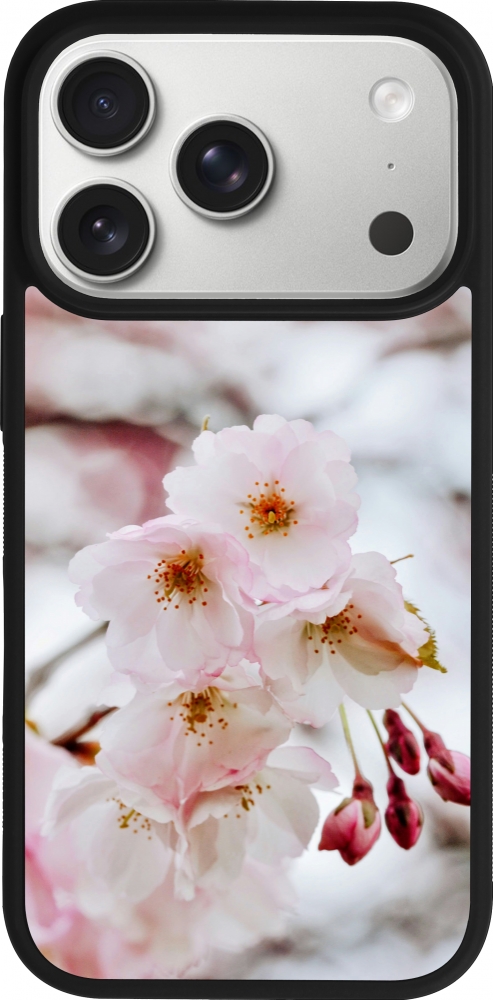 Coque iPhone 17 Pro - Silicone rigide noir Cherry tree Spring 2026
