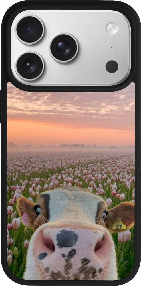 Coque iPhone 17 Pro - Silicone rigide noir Cow with tulips Spring 2026