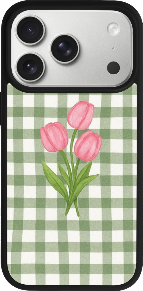 Coque iPhone 17 Pro - Silicone rigide noir Green vichy tulips Spring 2026