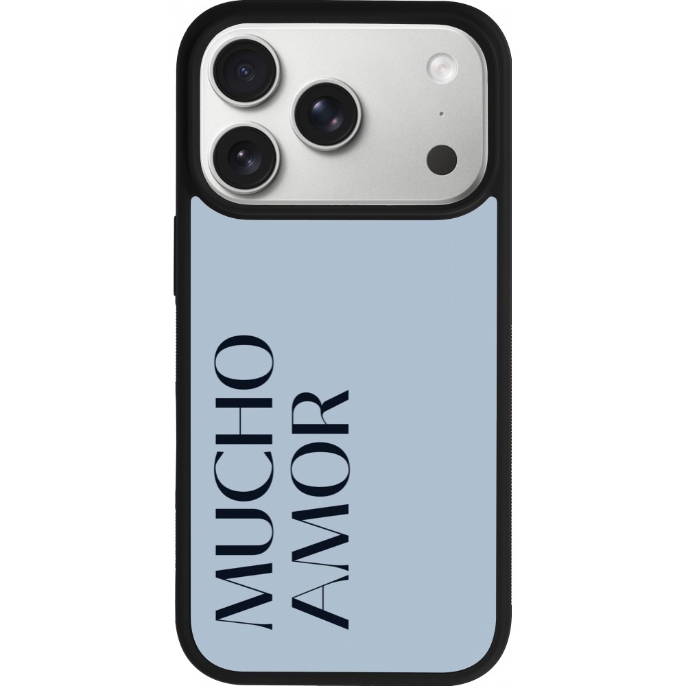 Coque iPhone 17 Pro - Silicone rigide noir Valentine 2024 mucho amor azul