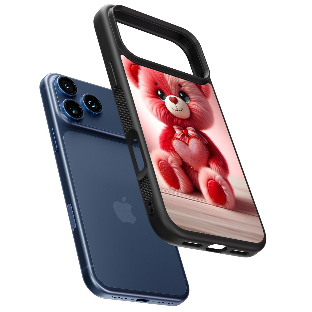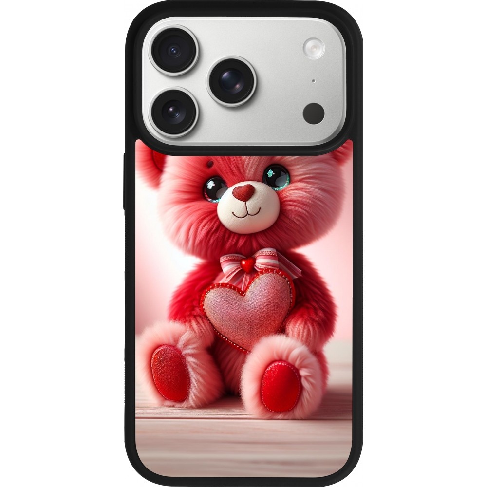 Coque iPhone 17 Pro - Silicone rigide noir Valentine 2024 Ourson rose