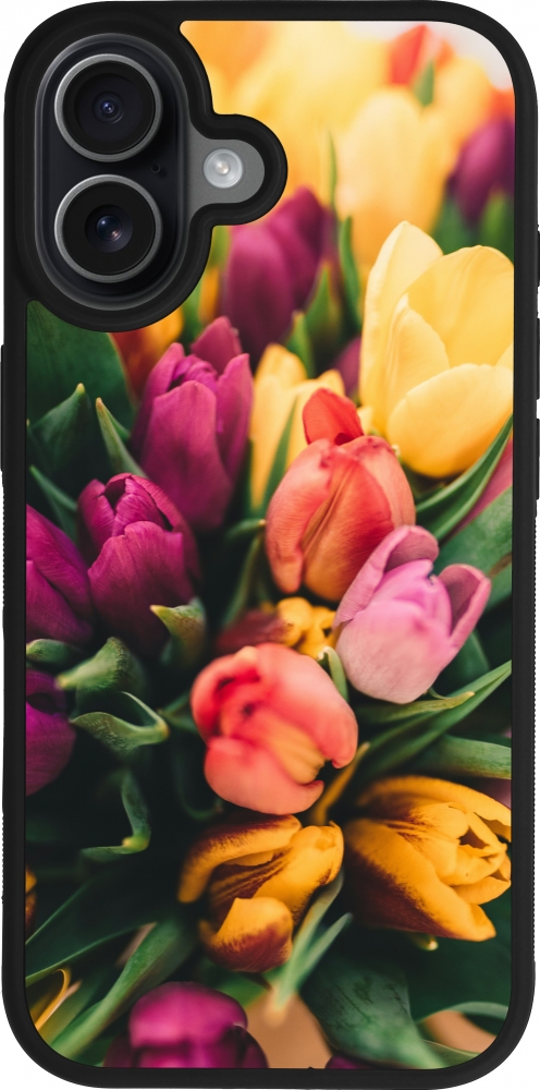 Coque iPhone 17 - Silicone rigide noir Bouquet of tulips Spring 2026