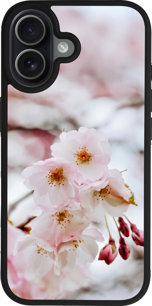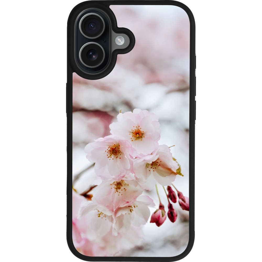Coque iPhone 17 - Silicone rigide noir Cherry tree Spring 2026