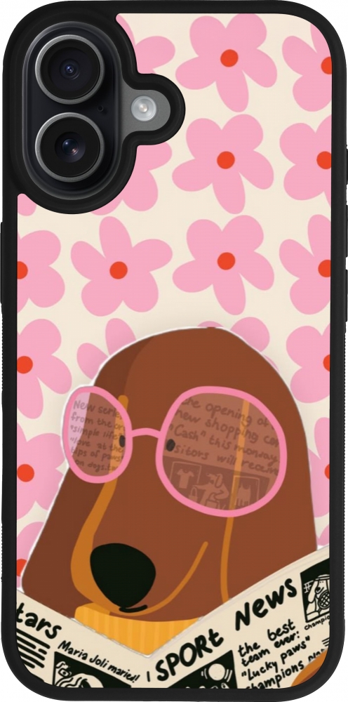 Coque iPhone 17 - Silicone rigide noir Dog with newspaper Spring 2026