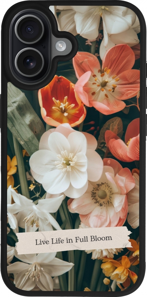 Coque iPhone 17 - Silicone rigide noir Full Bloom Spring 2026