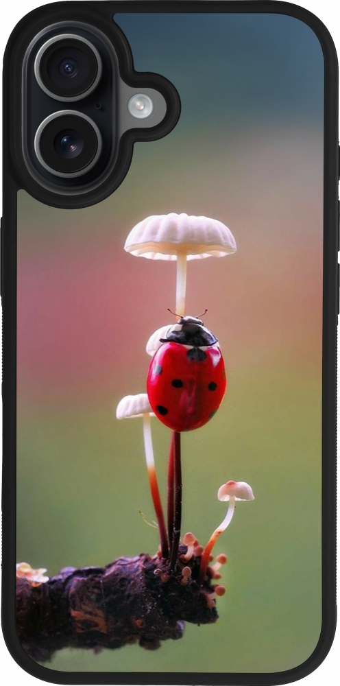 Coque iPhone 17 - Silicone rigide noir Ladybird on a mushroom Spring 2026