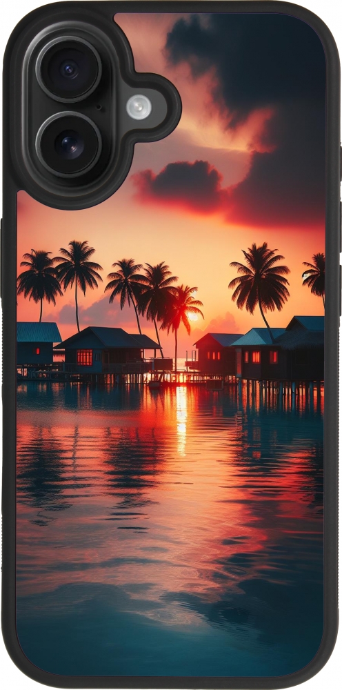 Coque iPhone 17 - Silicone rigide noir Paradis Maldives