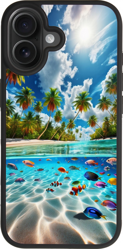 Coque iPhone 17 - Silicone rigide noir Plage Paradis