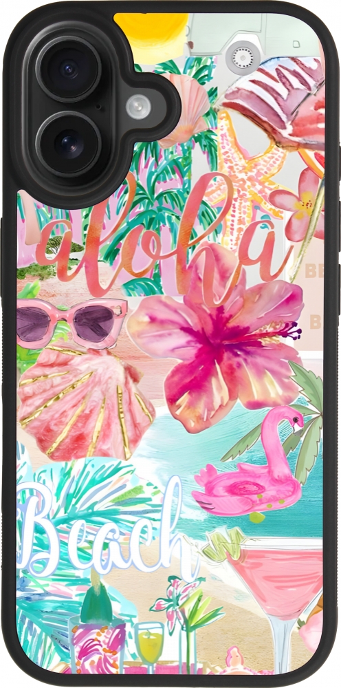 Coque iPhone 17 - Silicone rigide noir Preppy Collage Aloha