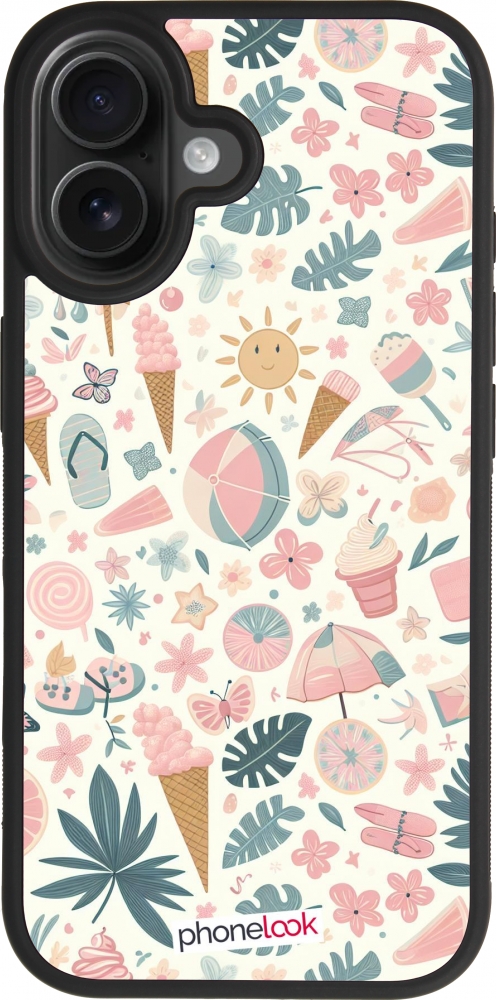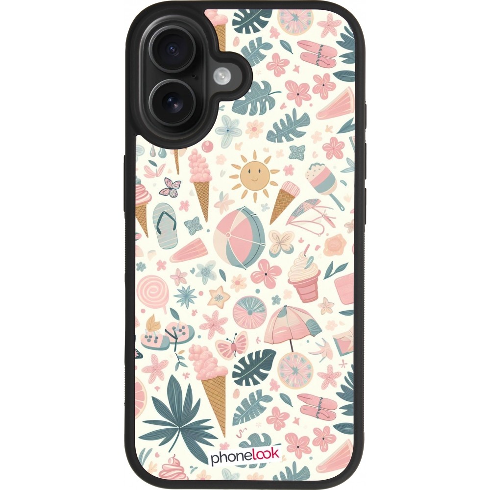 Coque iPhone 17 - Silicone rigide noir Summer Pink Pattern