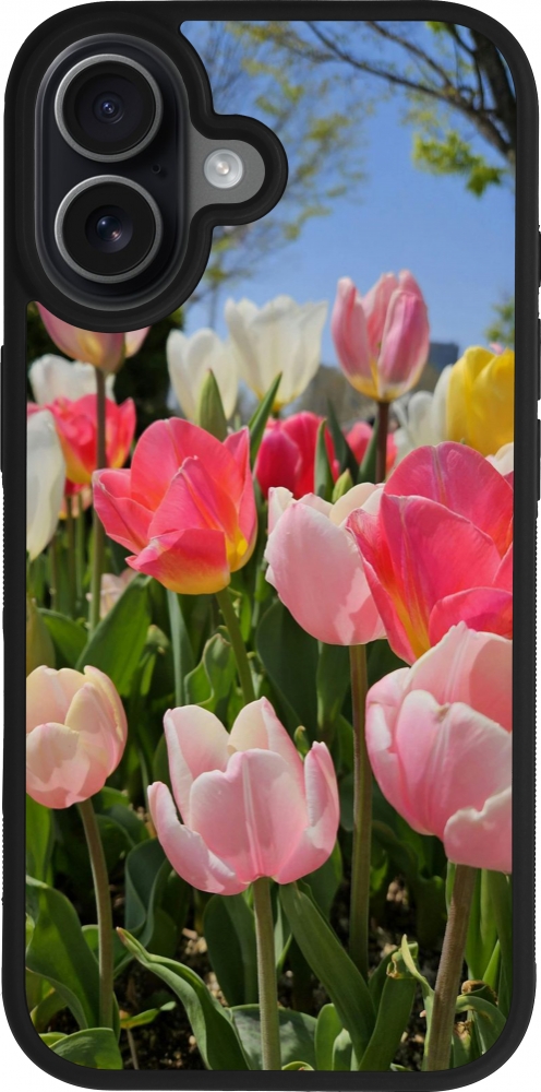 Coque iPhone 17 - Silicone rigide noir Tulips Spring 2026
