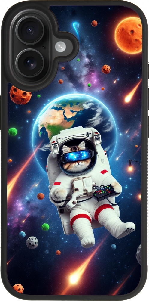 Coque iPhone 17 - Silicone rigide noir VR SpaceCat Odyssey